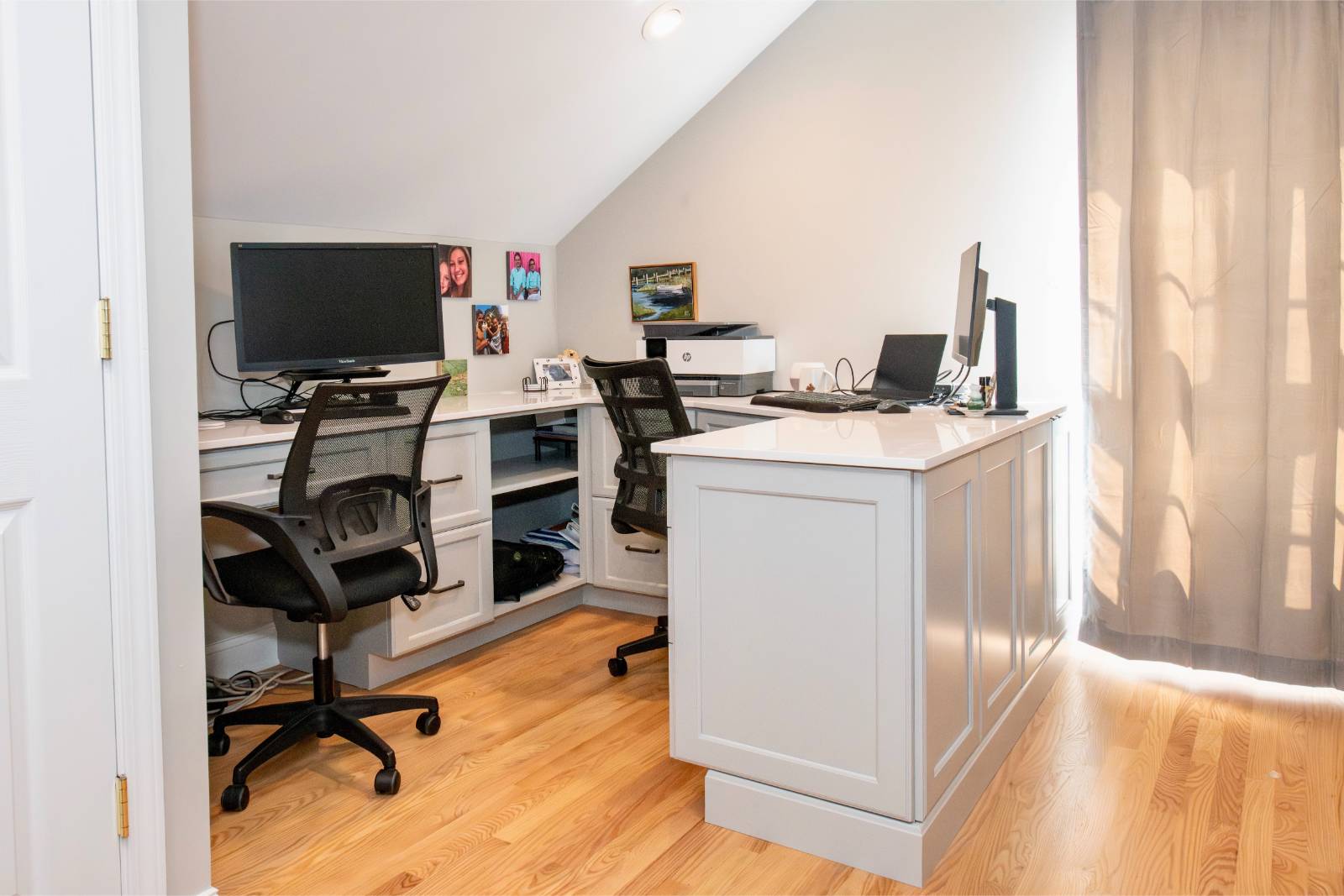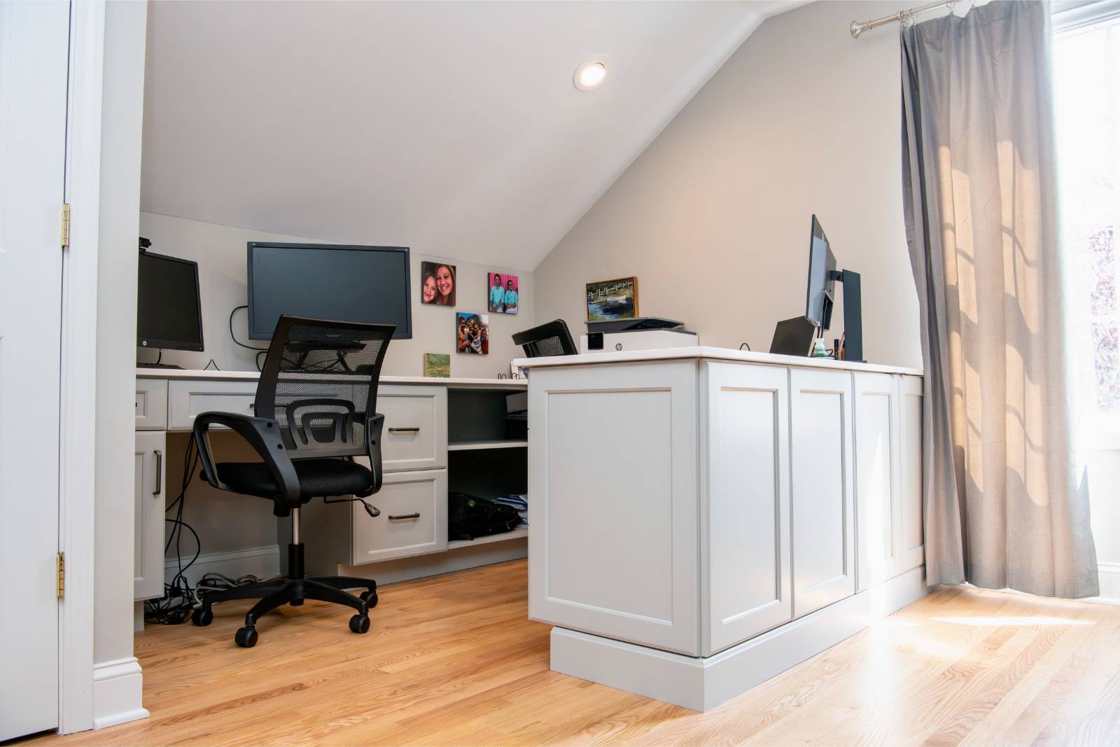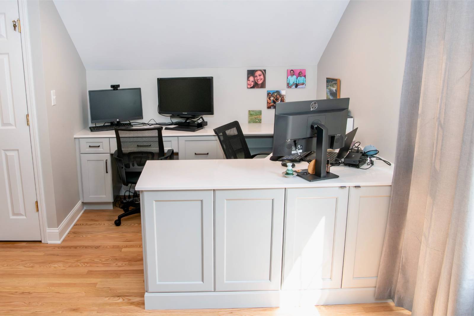A custom home office with built-in cabinetry, workstations, and a snack bar for everyday use!Full description and details coming soon!