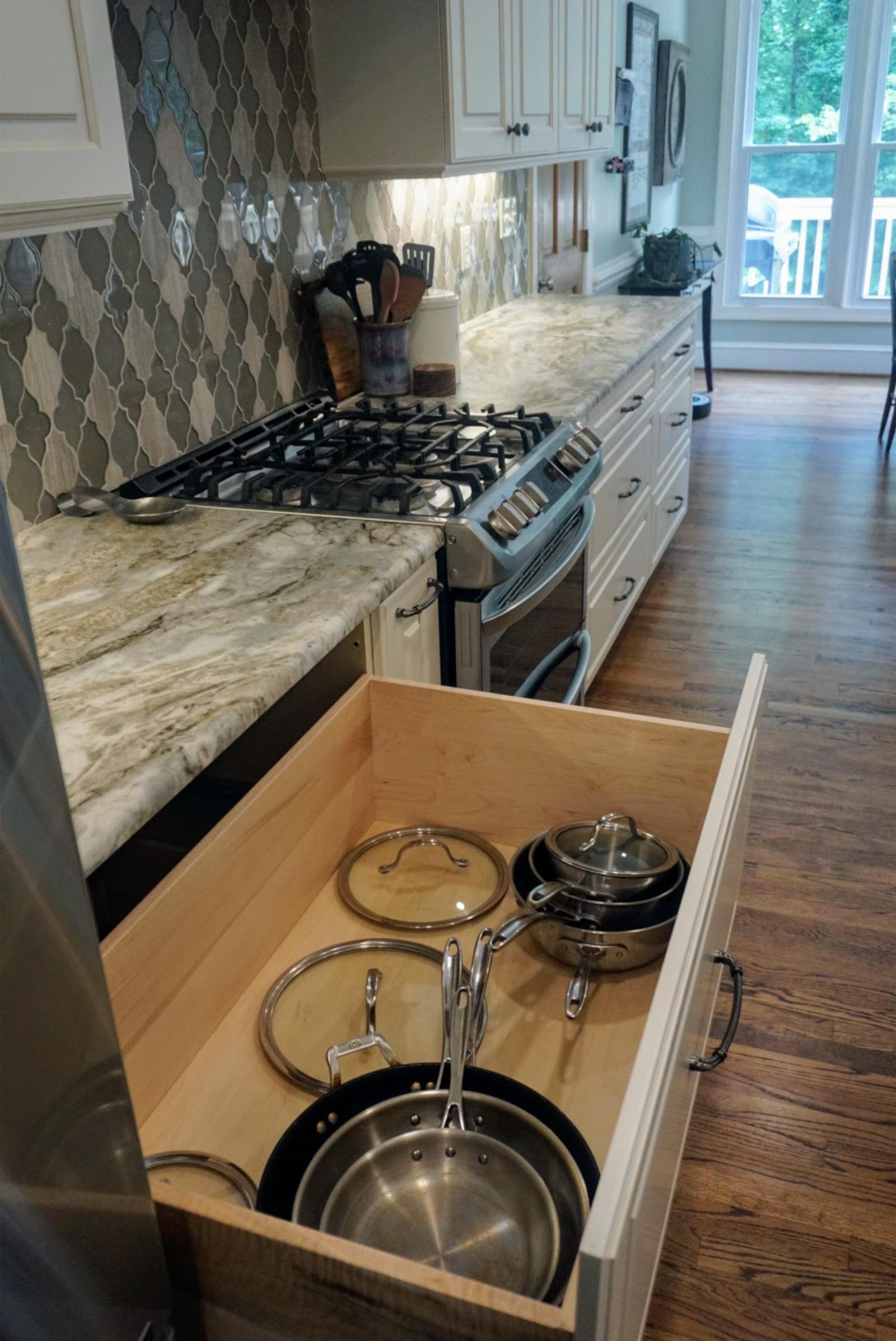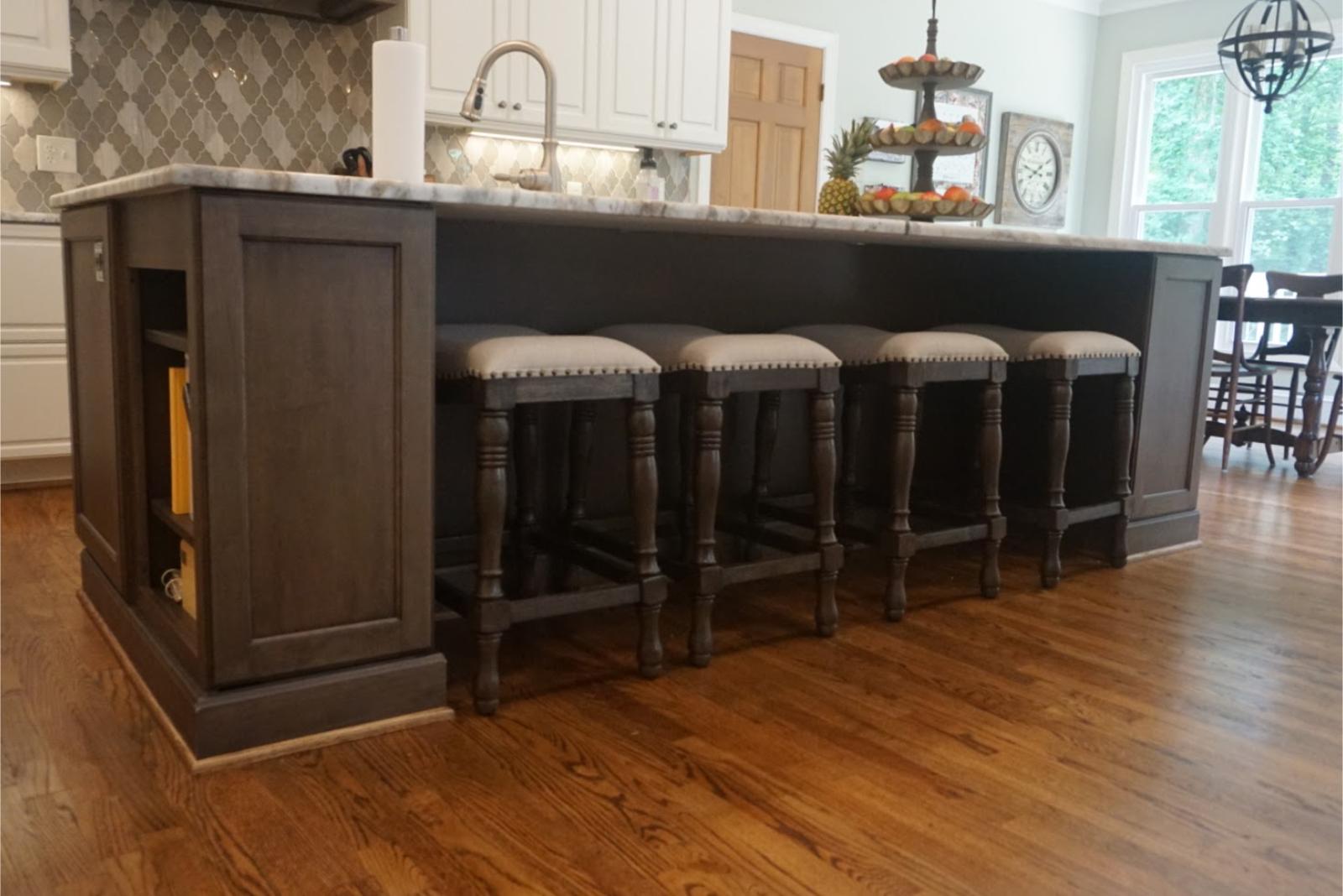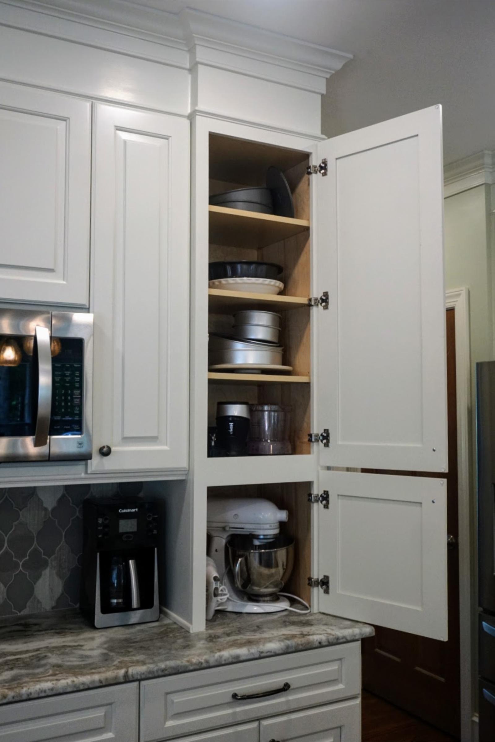 This kitchen blends clean white cabinetry with a warm wood island for a timeless, welcoming feel. A large island creates space for seating and everyday use, while custom details like the wood hood and patterned backsplash add character without overpowering the room. Designed to be both beautiful and practical for daily living.